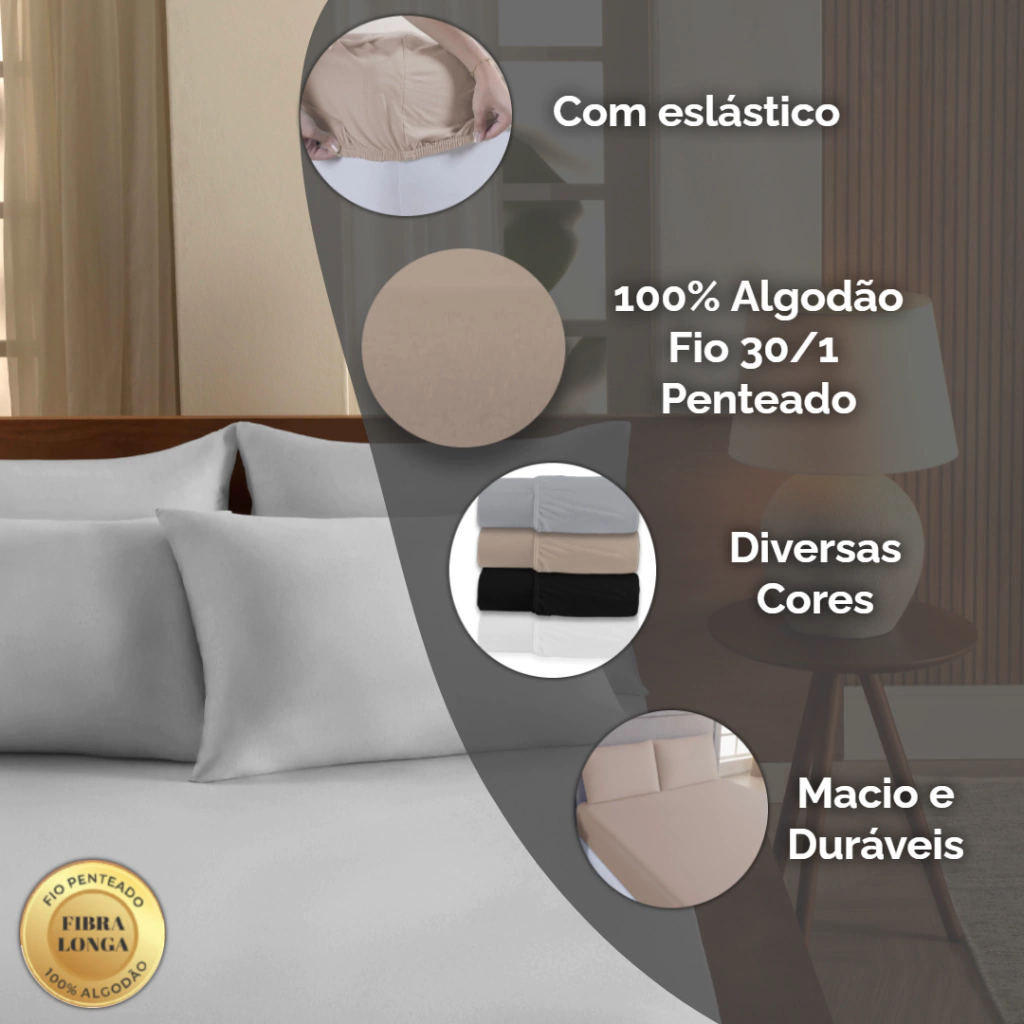 Nosso lençol com elástico e Fronha Lisa é perfeito para encantar a sua cama e seu quarto. O toque natural do algodão contribui para um tecido mais suave e prático, dando uma sensação agradável para te abraçar e envolver enquanto você dorme.