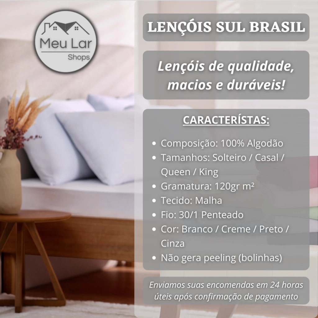 Lençol: 190 cm (L) x 200 cm (C) x 30 cm (A)
