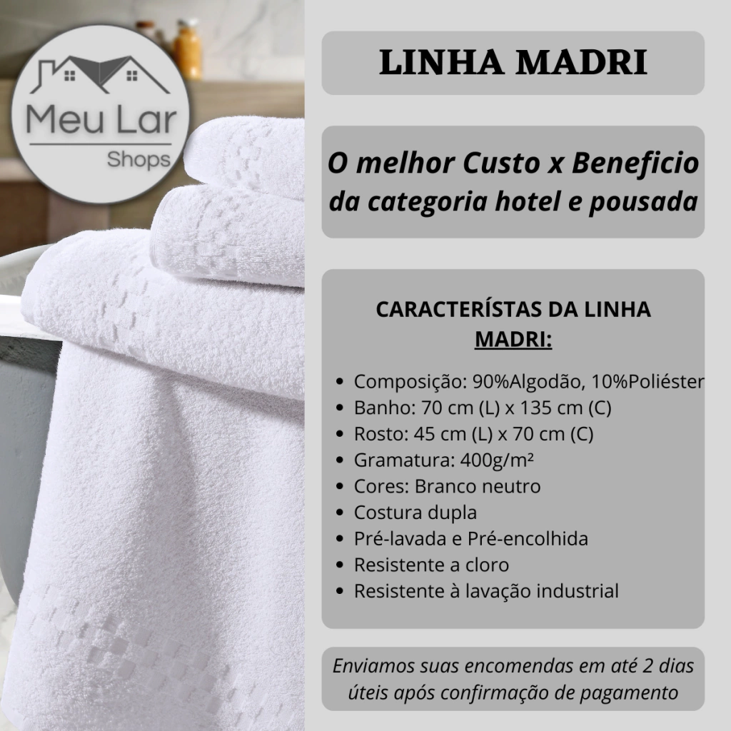 Nossa loja virtual traz a um clique de você a linha de toalhas Madri, que entrega praticidade e bem estar para seus hóspedes. Toalhas confeccionadas com acabamentos de primeira qualidade, trazendo o melhor produto com um custo benefício Inigualável.