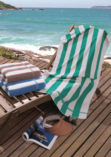 As toalhas de praia possuem toques macios e um altíssimo poder de absorção, pois seu processo é inovador! A toalha listrada, proporciona separar o uso por hóspede conforme cores, não havendo o uso da mesma toalha pela outra pessoa.