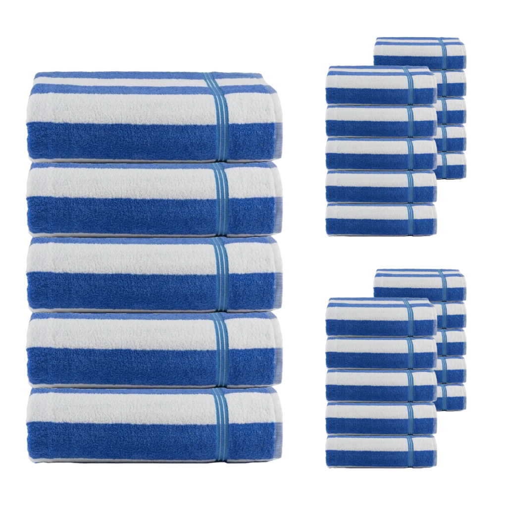 As toalhas de praia possuem toques macios e um altíssimo poder de absorção, pois seu processo é inovador! A toalha listrada, proporciona separar o uso por hóspede conforme cores, não havendo o uso da mesma toalha pela outra pessoa.
